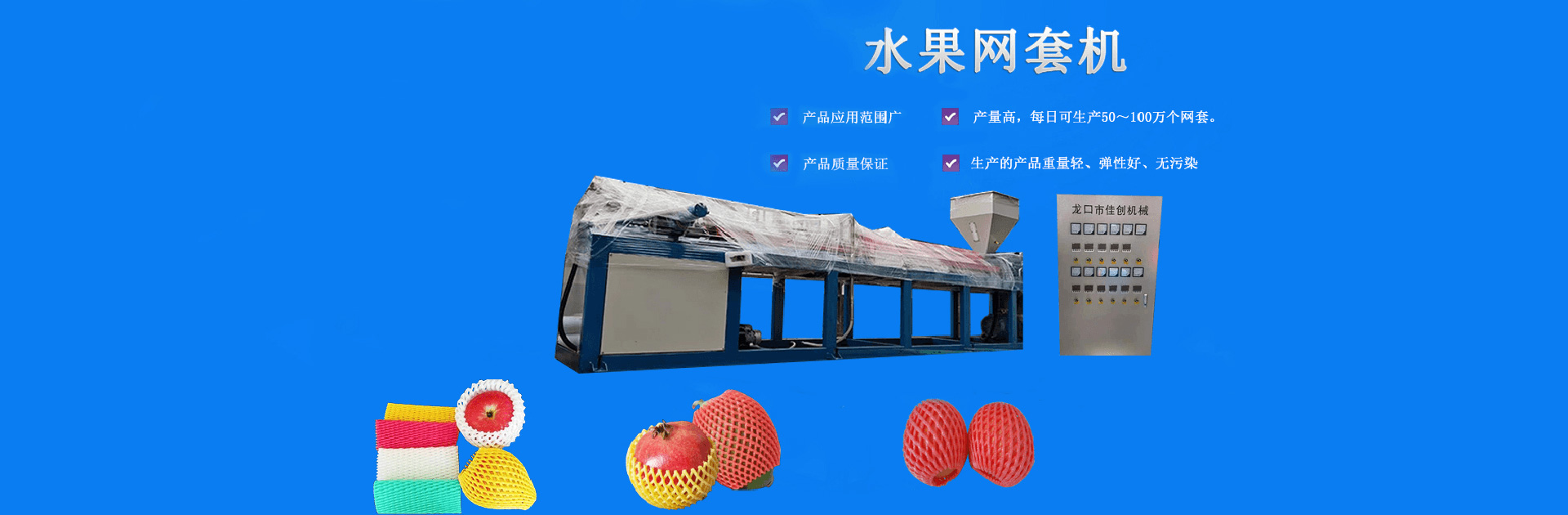 本公司創(chuàng)建于2002年,是一家集研發(fā)、加工、制作為一體,專門制作水果、蔬菜、玻璃器皿等發(fā)泡軟包裝設(shè)備的生產(chǎn)廠家。公司擁有眾多專業(yè)骨干人員,技術(shù)力量雄厚,可提供全套的售前及售后一條龍全方位服務(wù)。公司主營EPE發(fā)泡網(wǎng)套機(jī)、EPE發(fā)泡棒自動化設(shè)備。是深受業(yè)界好評的網(wǎng)套機(jī)生產(chǎn)廠家,我廠生產(chǎn)的網(wǎng)套機(jī)價(jià)格合理,歡迎新老客戶前臺詢價(jià)!
